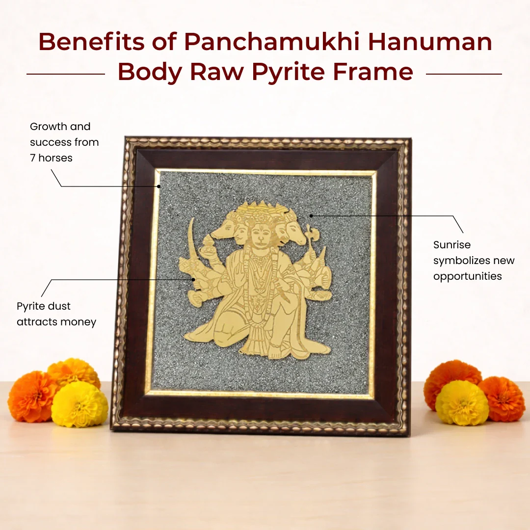 Panchamukhi Hanuman Raw Pyrite Frame for Strength & Protection